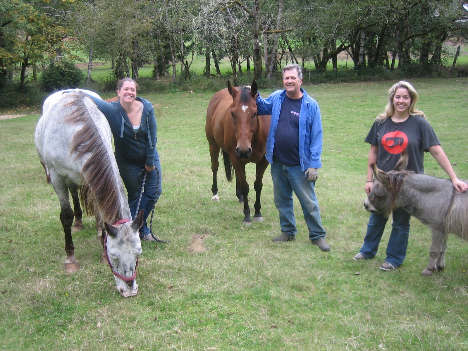 But for the farm, this day had been hanging around for a week. Time to do something, anything, that would make a memory or a kindness to add to the memories and kindnesses that have followed us for the past 14 years. So, we took photos and even a last ride around the property. And then today we took some family photos with Chaco, the kind that sport all the kids, except here we had the donkey and the other horses butting into the picture too. And it was a beautiful day. And we were all very much aware of our personal sorrow for a horse we had come to love over time and who would, in a short while, be gone from our world.They tell me it was quick and he didn't feel a thing. The horses in the barn spooked at the shot and then went back to eating their hay. The sheep lifted their heads from the pasture. I looked out through a screen of trees where I had last seen the whiteness of Chaco's coat as he stood in the sun. He was gone. And the tractor quickly filled the hole with dirt and the field took on the surreal look of peacefulness and quiet. But for the fragrance of fresh dirt, I could have closed my eyes and thought I imagined it all.Adios Chaco