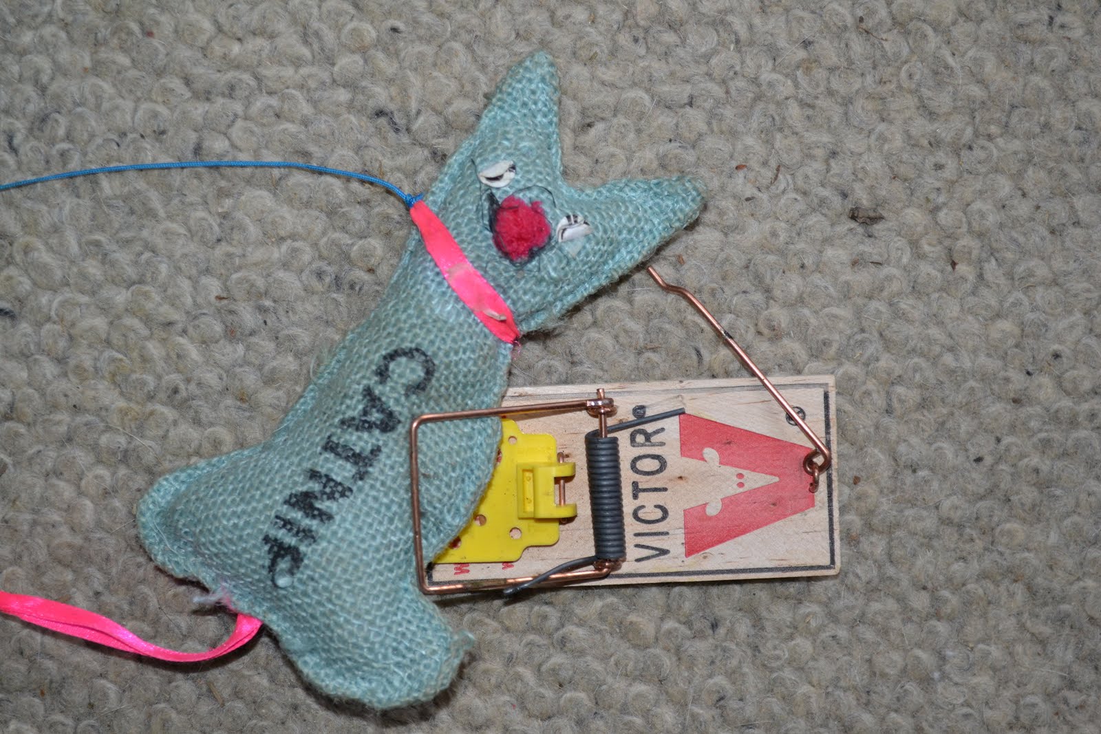 Old farm houses like ours have resident mouse populations. It just comes with the territory. It's probably true that their claim to the property goes back farther than ours in terms of genealogy. So, does this make them super mice or something? I ask this because my mouse traps have been disappearing at an alarming rate. I set them at night and they are gone by morning. Is this some sort of mouse game to drive the farmer's wife crazy so she cuts off their tails with a carving knife? I know the song.As any good farm wife will tell you, mouse traps are a must in a house like this. Returning to the store on a regular basis to replace them is ridiculous. I am now beginning to understand why the former owner always had her traps tied with pink string to a post or a hook. She must have had the same problem with these super mice and had no interest in driving to town every time she lost a trap.I suspect, in the pantry, there is a larger rodent at play. The hole in the floor looks big enough for a rat. I shudder to think what that rat is finding so tasty in a pantry that is filled mostly with canning jars and wine bottles. I know from trying to catch the thieves that a rat won't fall for a rat trap once a buddy has been caught, so I am surprised it would fall for a mouse trap. Unless it is careless with a tail or something.Every now and again, I will find a sprung trap flung far from where I set it. Sometimes there is something in it and other times not. I debate from time to time whether I am being totally inhumane with these traps, but poison seems worse and too dangerous for our other animals. Glue traps just seem cruel. Spring traps when they catch the neck are fast. What to do when it's just a leg that has been caught? I let the animal go because it wasn't its time to die.Did I mention we have not one but two cats that are supposed to keep the mouse population in order? Bezel is retired, but Bubba is a killer when he isn't playing catch and release in the house. That would be, catch the mouse outside and release it inside. When he's focused, though, there are no second chances. Maybe he could focus a bit more on the trap thieves so I don't have to go back to the store.Photo: cat toy in the trap (didn't think a dead mouse was a good idea)All Rights Reserved. Copyright 2011 Scottie Jones